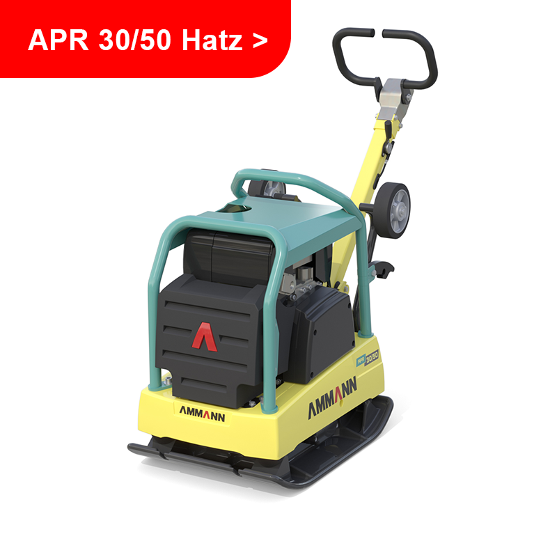 Die reversierbare Ammann-Rüttelplatte APR 52/75 punktet mit hervorragender Manövrierfähigkeit und einem kraftvollen 8,2 KW-Motor, der Steigungen bis zu 30 Prozent locker bewältigt. Bei einem Gewicht von 365 Kilo bringt sie es auf eine Zentrifugalkraft von 52,5 kN. Die große Schwester APR 58/75 erreicht eine Zentrifugalkraft von 58 kN bei einem Maximalgewicht von 418 Kilo.